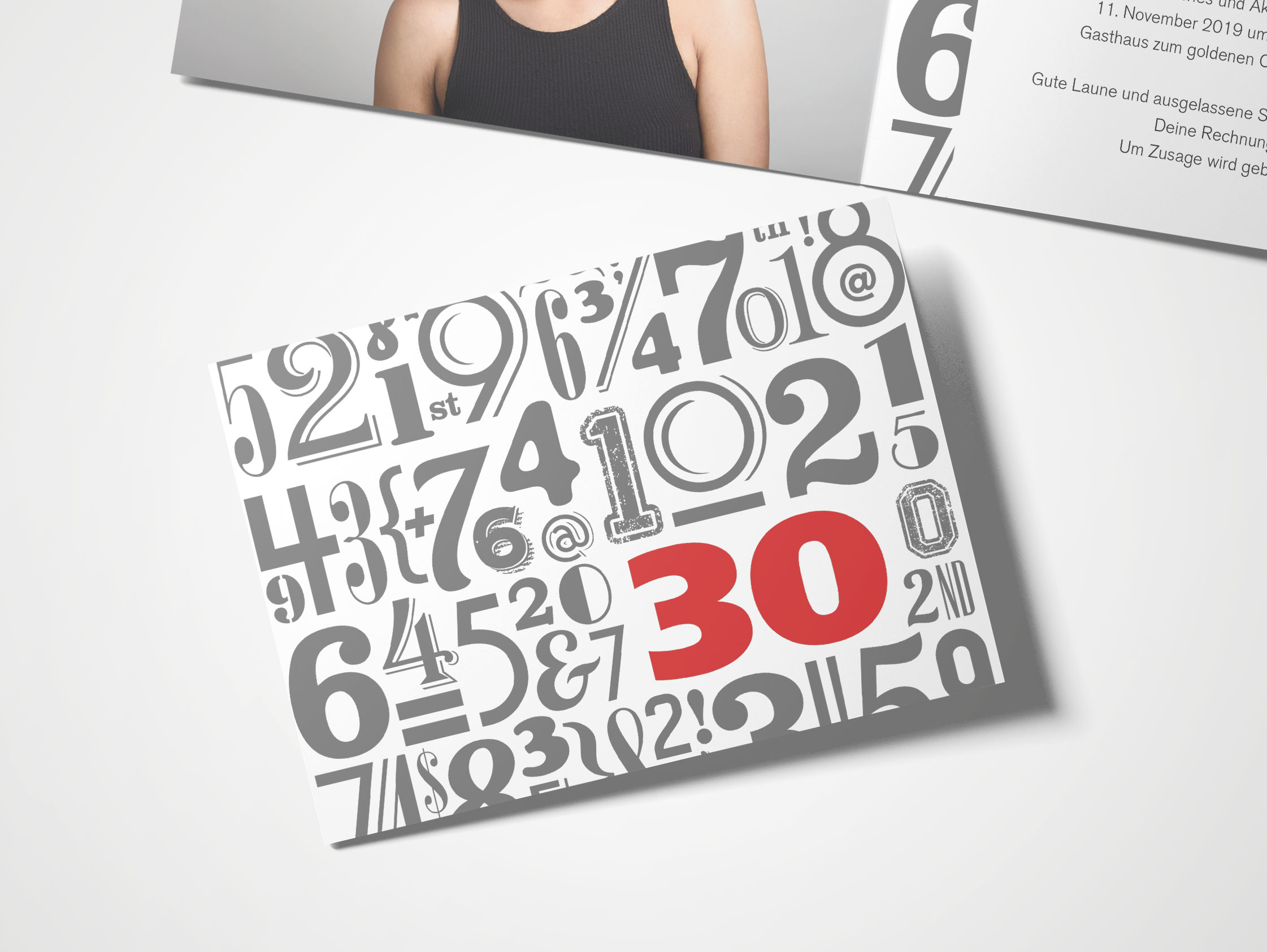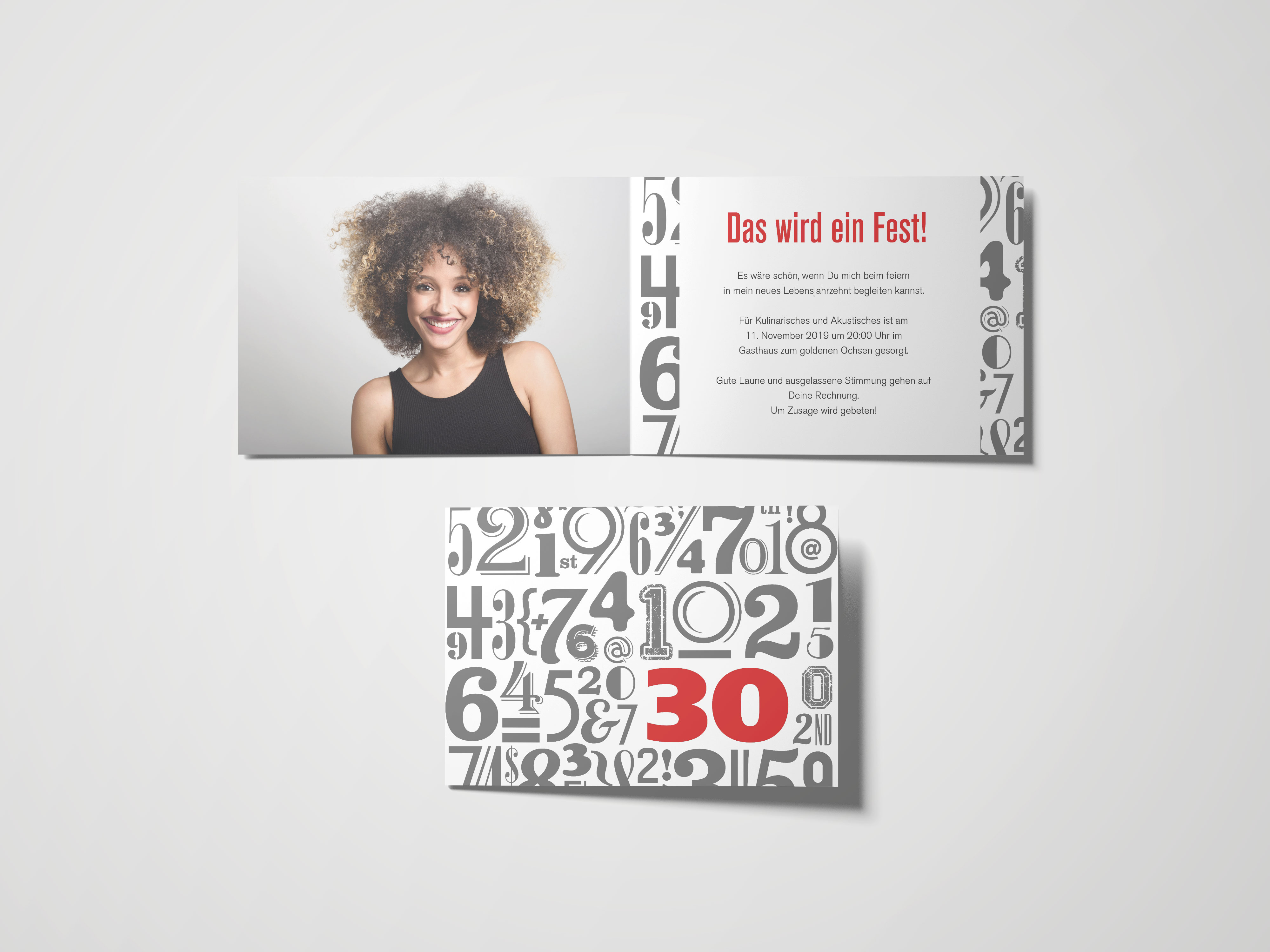 Du liebst Zahlen? Wir auch! Die Einladungskarte zum 30. Geburtstag Zahlenwolke rückt deinen runden Geburtstag ins richtige Licht. Alle Texte und Bilder der Karte werden für dich von unseren Grafikern in die Karte eingebaut und nach deinen Wünschen geändert. Bei uns bleibt kein Wunsch unerfüllt.
