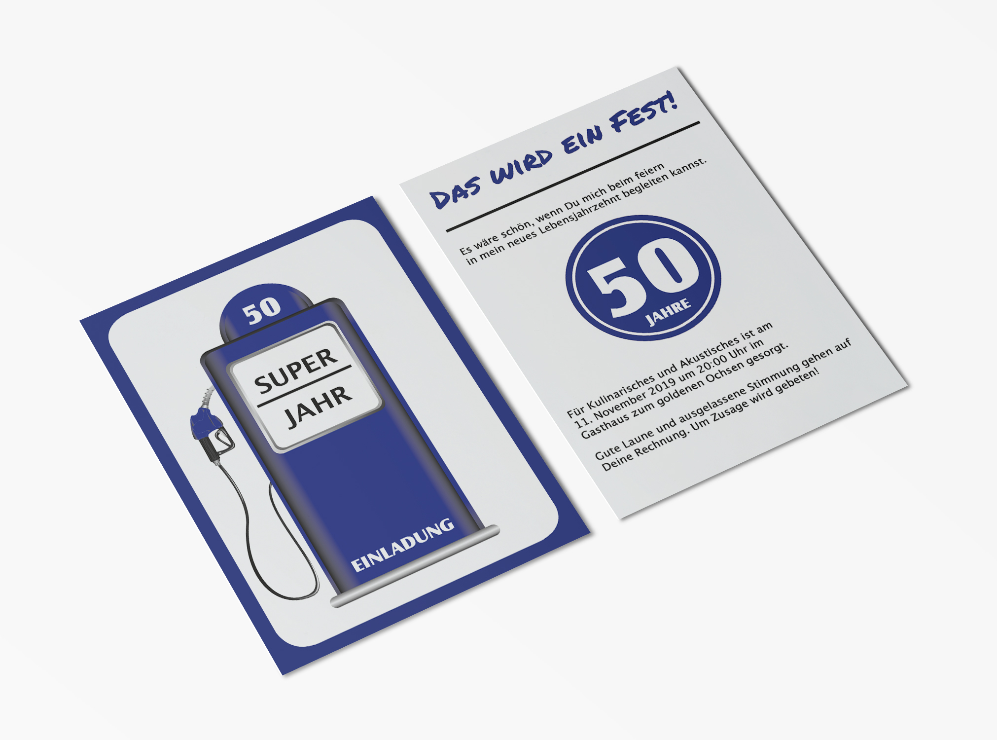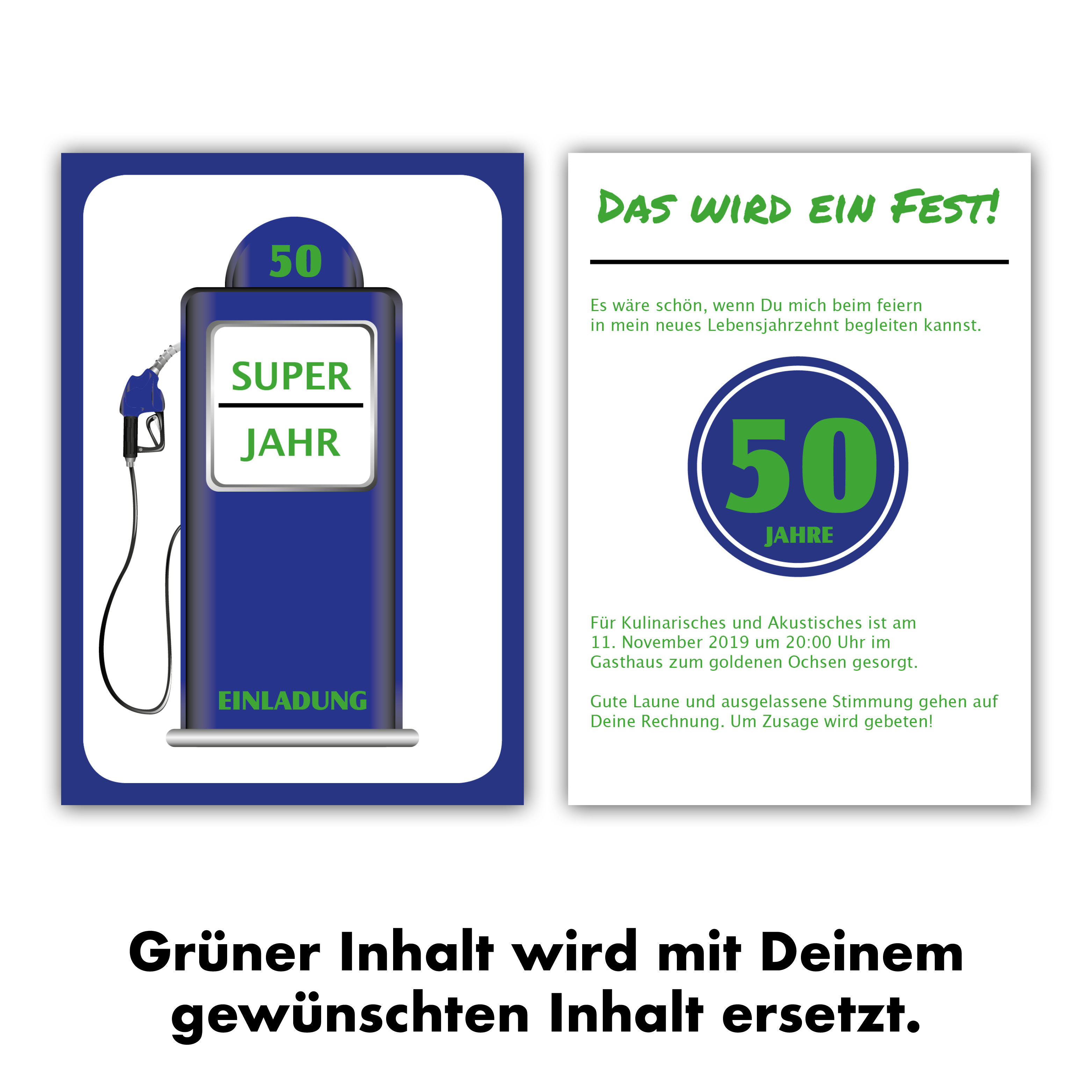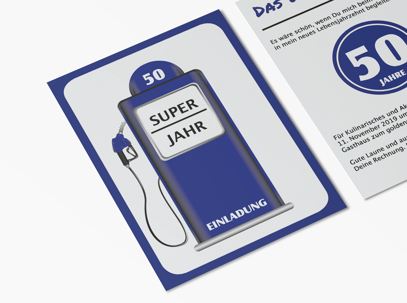 Einladungskarten 50. Geburtstag Zapfsäule