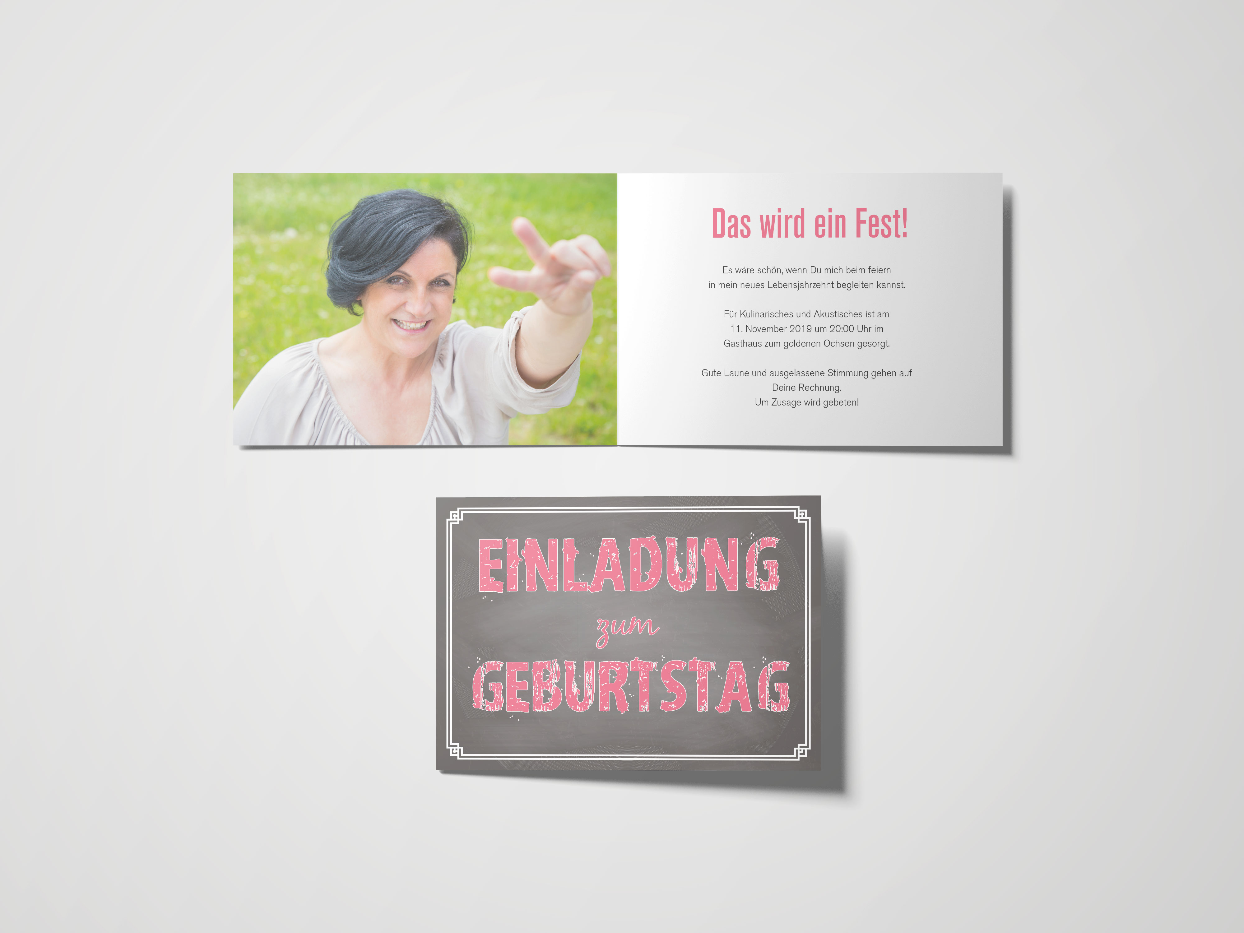 Es soll etwas plakativer werden? Gerne! Mit unserer Einladungskarte zum 60. Geburtstag Schild wird dein runder Geburtstag ins richtige Licht gerückt. Die Texte und das Bild der Einladung werden bei uns von Grafikern in deine Karte eingebaut. Alles unkompliziert und ohne Stress.