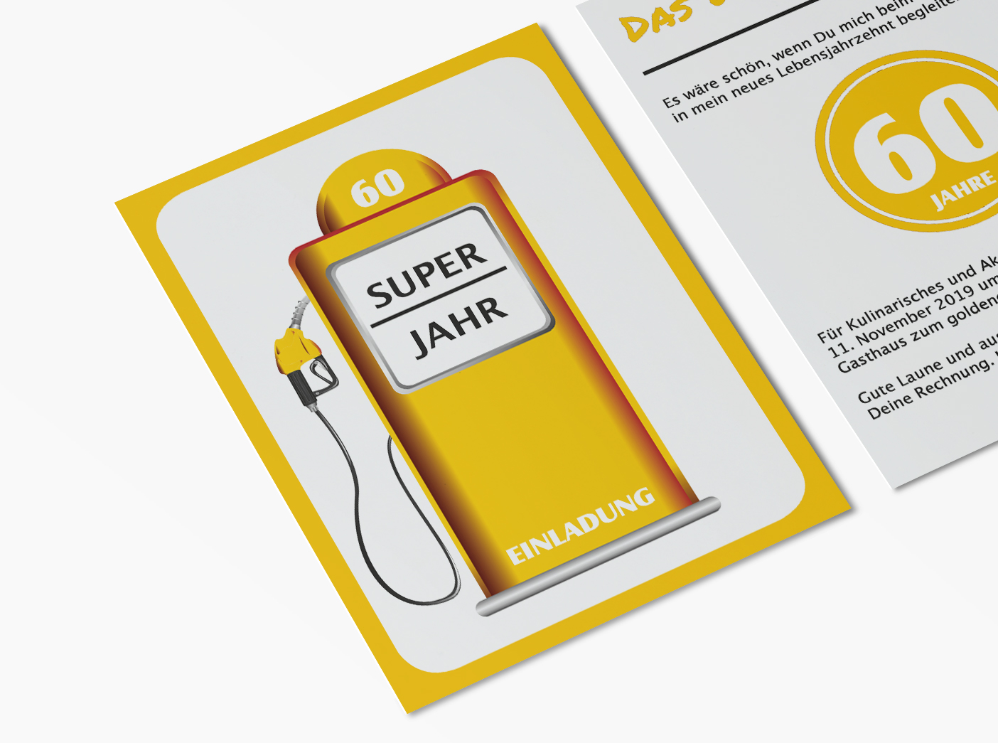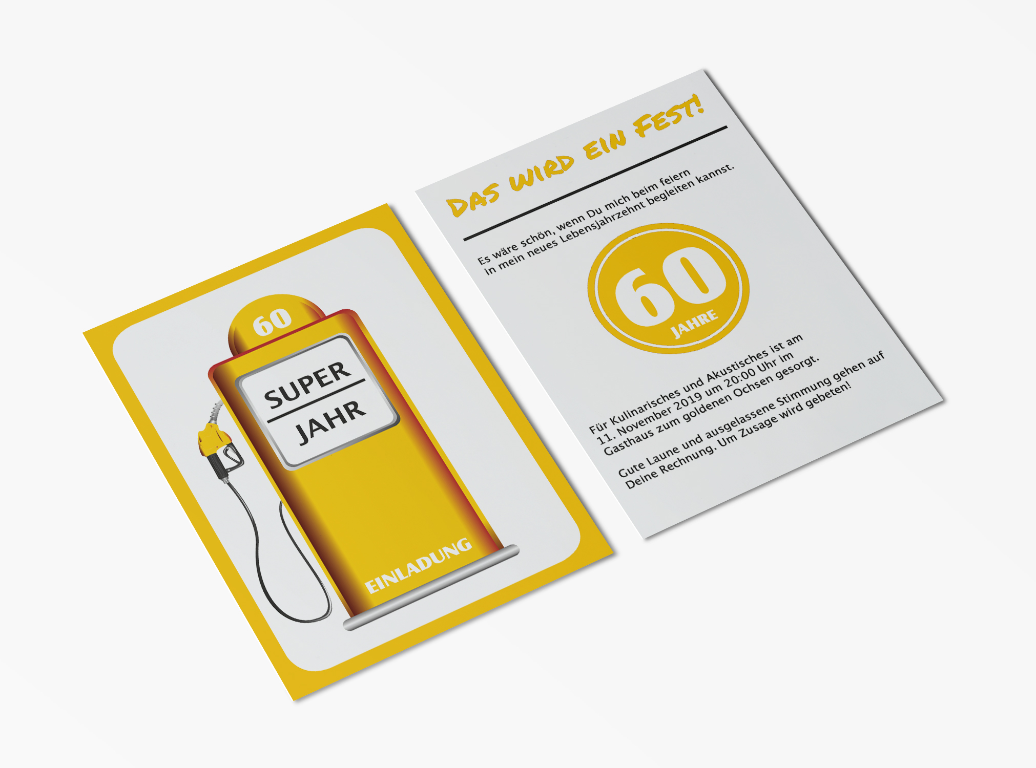Geburtstagskinder mit Benzin im Blut sind mit dieser Einladungskarte zum 60. Geburtstag garantiert gut beraten. Alle Texte der Karte können individuell geändert werden. Unser Grafik Team kümmert sich um jeden Wunsch.